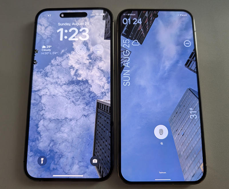 왼쪽이 iPhone 14 Pro Max, 오른쪽이 픽셀이다.
