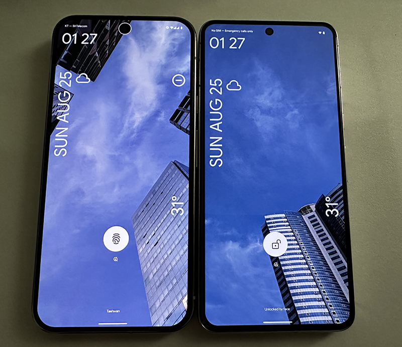 왼쪽이 픽셀 9, 오른쪽이 픽셀 8이다. 전면의 차이는 라운드가 확 달라졌다는 것이다.